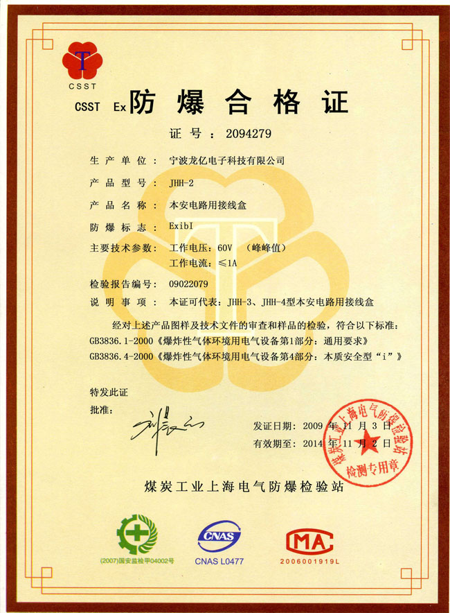 假證書為假冒偽劣制造商PS的,證書于2014年11月2日過期。相關證書可在煤炭工業上海電氣防爆檢驗站網站查詢。